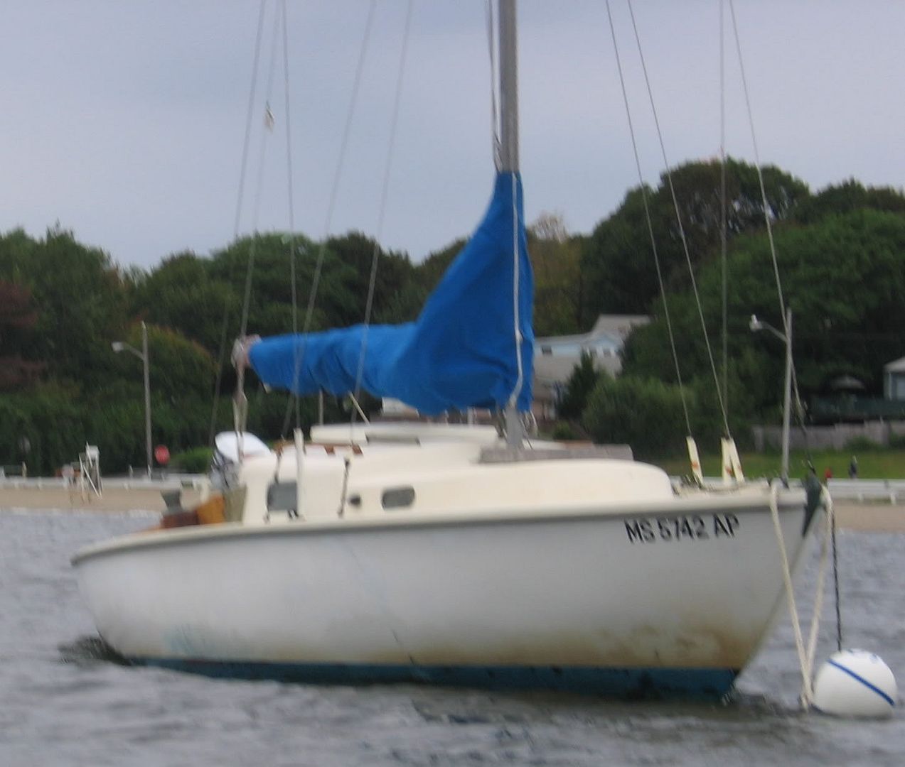 There are better locations in town, but there are waiting lists for them. So I’ll take my mooring at the beach because it means I’ve got a place to put the boat right away. Some might call me lucky, because while I was on vacation on Cape Cod a few weeks ago, I read that most towns had waiting lists that were thousands of names long! People are waiting 12 – 15 years for a spot to place their mooring!!